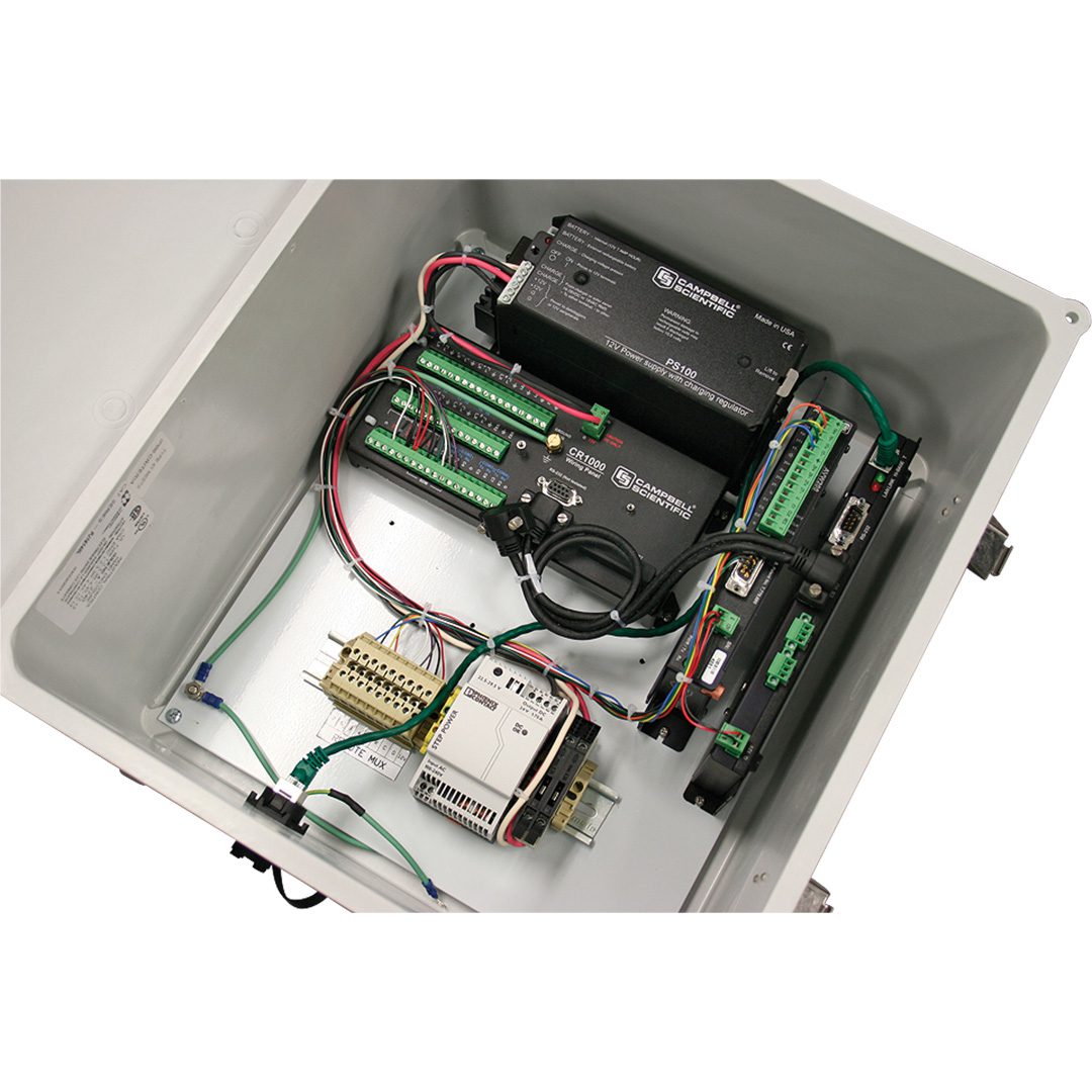 | Fit up to 10 Flexi-Mux in a 20”x16”x8” enclosure. | Connect analog and digital sensors (4-20mA, Voltage, SDI12, MODBUS, voltage differential/ single ended) |