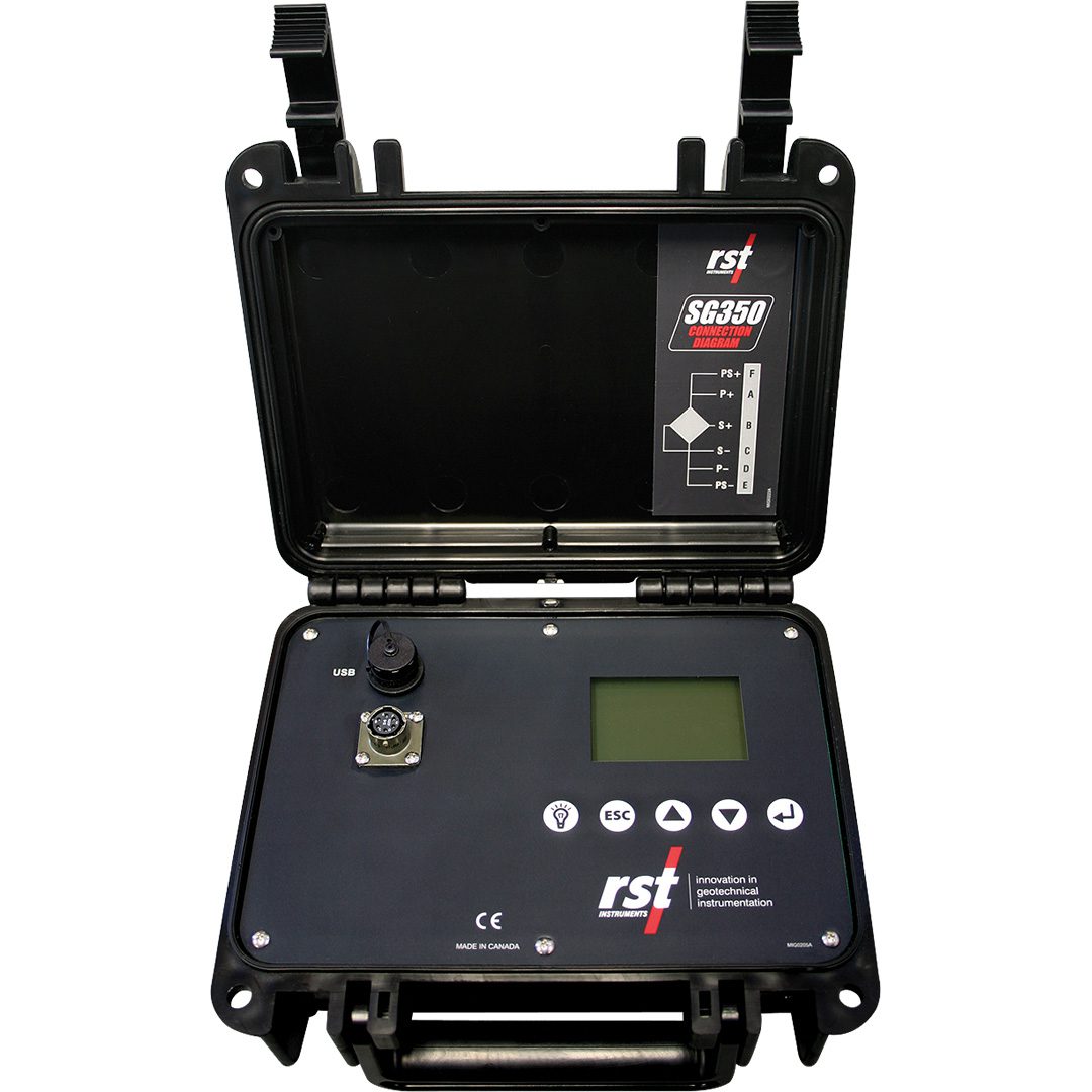 The SG350 reads, displays, and logs bridge transducers. Unprecedented accuracy, flexible memory options and ease of use make the SG350 Bridge Transducer Readout invaluable for projects requiring monitoring of bridge transducers. Maximum download time is only 15 seconds.